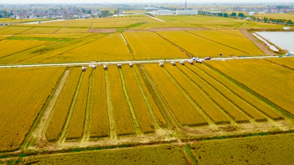 興化市全力穩面積穩產量,嚴禁耕地“非農化”“非糧化”,將糧食安全責任制納入全市鄉村振興考核重要內容,細化分解今年243萬畝、24.9億斤糧食播種任務,全面清退復墾9085畝養殖塘口,牢牢守住耕地保護紅線。2021年稻麥平均單產1028.8公斤,糧食總產24.87億斤;今年小麥平均單產399.9公斤、總產8.41億斤,“揚麥28”百畝示范方平均畝產695.8公斤,最高田塊單產達715.8公斤,創造了泰州市小麥百畝示范方平均單產、小麥最高田塊單產歷史紀錄,全域基本實現“噸糧田”。 堅持高標準高效益,整合財政資金、項目資金、專項債和貸款近20億元,整市推進、滾動實施高標準農田建設及提檔升級工程,基本形成田成方、林成網、渠相連、路相通、旱能灌、澇能排的現代農業生產格局。出臺高標準農田建設工程管護實施細則和績效評價辦法,常態化開展保養維護、清淤疏浚等工作,確保建好一塊、用好一塊、管好一塊。目前,已建成高標準農田134.59萬畝,比重達71.18%,耕地質量總體提升0.5個等級。“十三五”以來新增有效耕地4萬畝,畝均糧食產能增加10%—20%,該項工作受到2021年省政府真抓實干激勵表彰。 注重強地力強載體。加強耕地質量保護提升,深入推進農藥化肥減量行動,持續實施測土配方施肥、有機肥替代化肥等項目,積極推廣秸稈全量還田、增施有機肥等技術,2021年農藥、化肥使用量較2015年分別減少9.7%、7.12%,全市耕地質量平均等級達2.58。今年夏收期間,試點開展秸稈離田及綜合利用,推廣面積近8.6萬畝,離田率約80%,有效解決了因秸稈還田粉碎深埋不夠帶來的病蟲害影響。突出農業園區示范引領作用,整合各類資金約10億元,創建以優質品牌稻米示范為主的省級現代農業產業示范園,成功入選2022年國家農業現代化示范區創建名單。 致力“良田”產“好糧”,提高糧食生產質效
