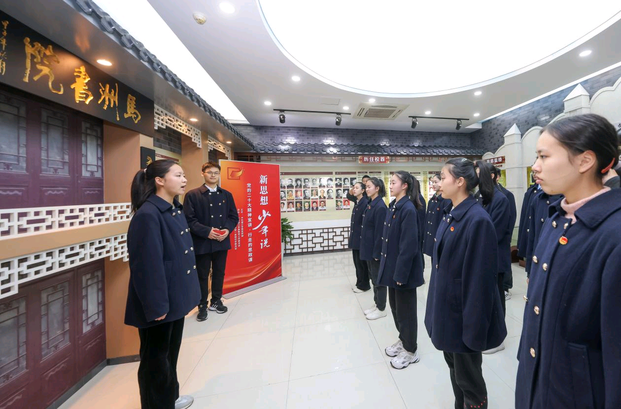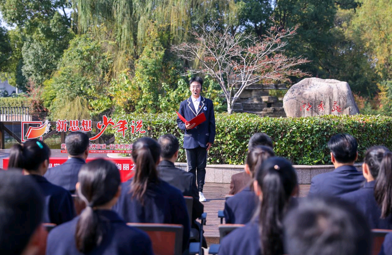 初冬時節,江蘇省靖江市第一高級中學書聲瑯瑯,湖光如鏡。11月15日,“‘新思想少年說’·行走的思政課”在這里舉行。同學們在美麗的校園中行走,在新思想的世界中徜徉,在深學細悟中感受二十大的精神偉力,進一步堅定“強國復興有我”的理想信念。