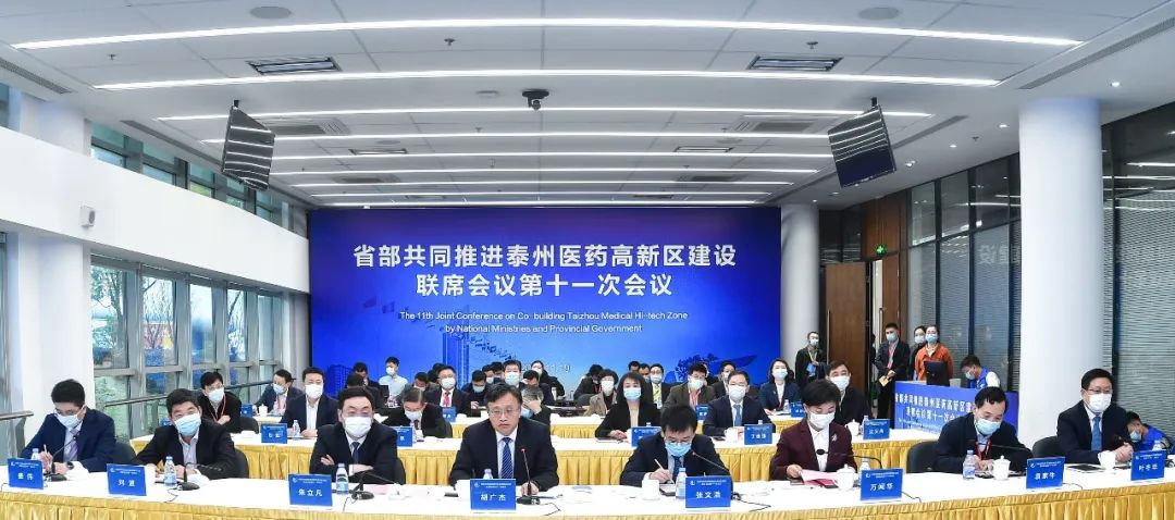 11月19日,省部共同推進泰州醫藥高新區建設聯席會議召開第十一次會議,科技部、國家衛生健康委、國家藥品監管局、國家中醫藥管理局與江蘇省省人民政府,專題研究泰州醫藥高新區發展相關重大事項,共話中國醫藥城創新發展大計、共繪泰州大健康產業高質量發展美好藍圖。