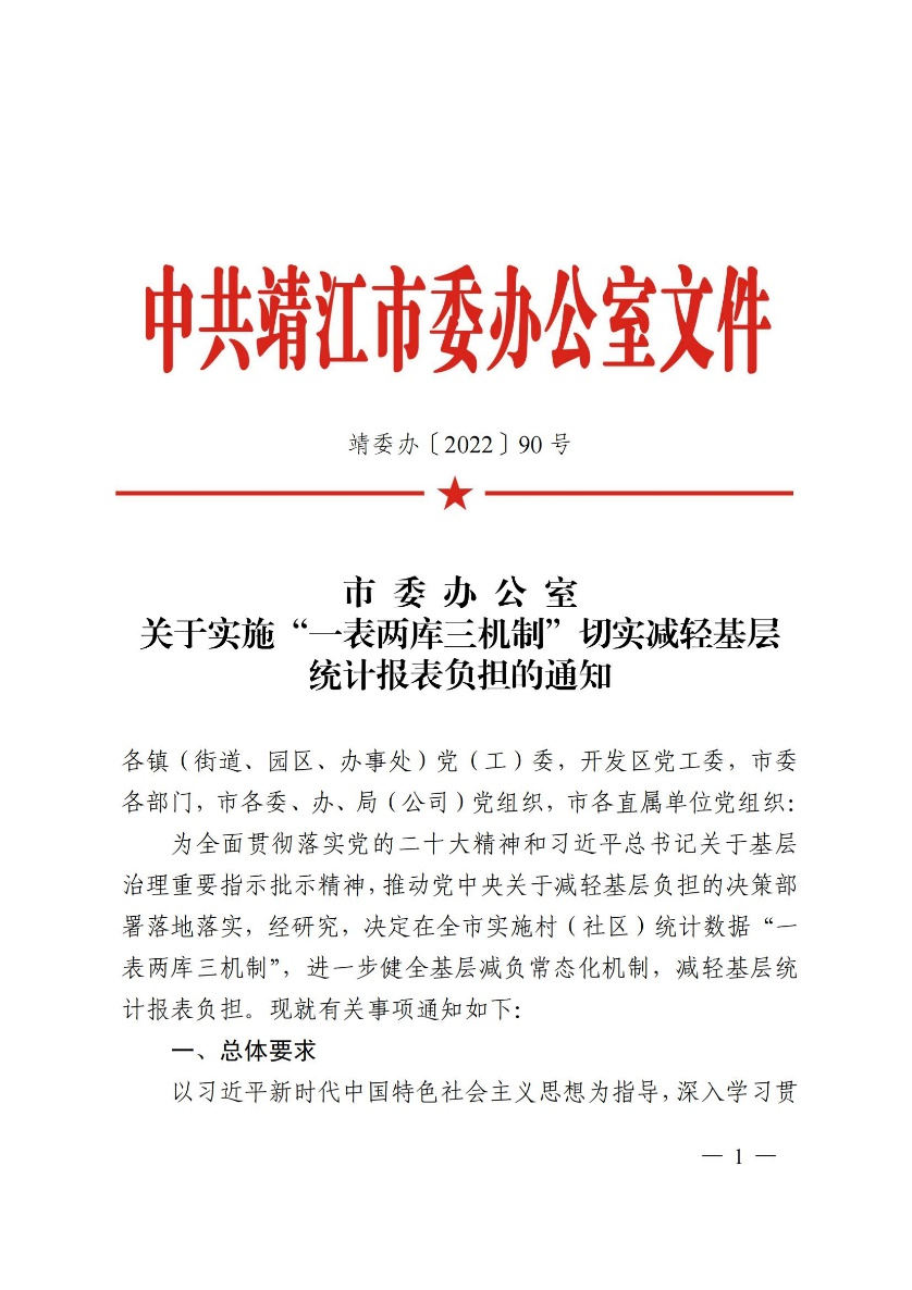 為切實給廣大基層干部解套松綁,讓基層干部輕裝上陣,把更多時間和精力用在干事創業上,靖江市探索建立“123”機制,即明確基層上報“一套表”、建立市鎮數據“兩個庫”、形成協調監督考核“三項機制”,全面精簡、規范基層村(社區)的報表報送。