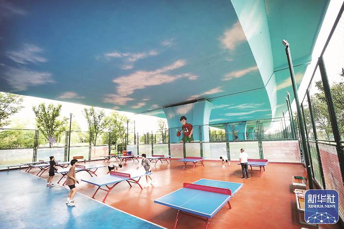 近日,新華社客戶端發(fā)布2022年新華社年度照片·體育新聞,新華社記者季春鵬拍攝的“市民在泰州市東環(huán)高架體育公園健身”的照片入選。 2022年8月28日,江蘇省第二十屆運(yùn)動(dòng)會(huì)在泰州開(kāi)幕。當(dāng)日,新華社記者季春鵬利用采訪間隙來(lái)到新建成的泰州東環(huán)高架體育公園參觀游覽。“利用高架橋下的閑置空間建體育公園本不多見(jiàn),還建得如此漂亮就更難得了。”季春鵬說(shuō),當(dāng)時(shí)恰逢眾多市民在公園內(nèi)打乒乓球,那種快意健身的活力深深感染了他,于是便按下快門記錄下精彩瞬間。照片上,東環(huán)高架橋橋墩以藍(lán)色為底色,上面繪有“朵朵白云”,橋墩下方八張嶄新的乒乓球桌排列有序,6位市民置身在“藍(lán)天白云”下打乒乓球,好不愜意。照片刊登后,全網(wǎng)點(diǎn)贊刷屏。
