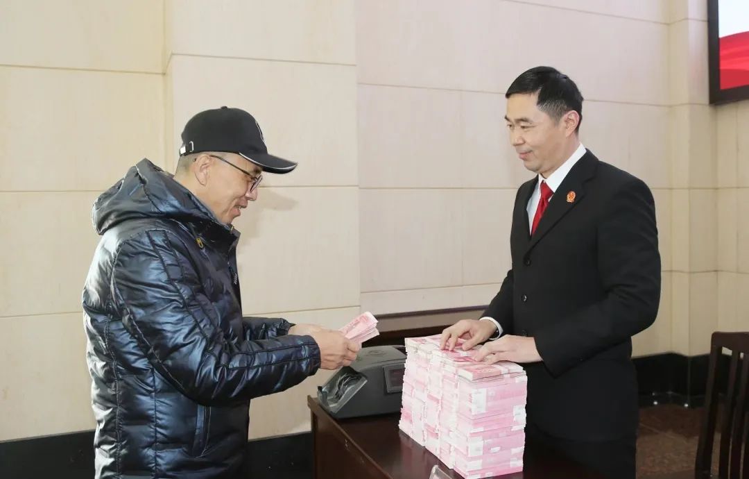 近日,泰州市海陵區舉行涉企業、涉民生案件案款集中發放儀式,區法院集中發放執行款395.34萬元,及時將申請執行人的合法權益兌現成“真金白銀”。 “悠悠萬事、民生為大”。年關將至,泰州海陵區法院將涉民生案件列為重點案件,發起多輪執行攻堅。通過黨建賦能,建立“快立、快執”涉民生案件綠色通道,采用一案一策的執行戰略,依法高效處置財產,想方設法執結案件,多次開展凌晨、夜間集中執行行動,有力震懾被執行人,有效確保農民工及時、足額獲得勞動報酬,安心回家“過大年”,從而營造和諧穩定的社會環境。 案款發放現場,執行干警認真核對申請執行人身份信息與發放金額,并逐一辦理案款領取手續后,將支票交到領款人手中。發放過程有條不紊進行了一個多小時,所有申請執行人均足額拿到了執行款項。 送薪上門溫暖人心 李某是勞務者受害糾紛案件的申請執行人,李某在某物業公司從事清洗玻璃幕墻工作期間,從腳手架上意外摔落跌傷,造成一級傷殘,雙下肢截癱。考慮到情況特殊,秉承著以人為本、司法為民的執行理念,執行干警馬俊帶隊上門將案款送到李某手中。申請執行人坐在輪椅上手捧現金,動情地說,感謝你們的辛苦付出! 接下來,海陵區將以此次執行案款集中發放活動為契機,不斷加大強制執行力度,依法用足用好失信懲戒措施,急群眾之所急,盼群眾之所盼,努力確保執行結果有力度,執行措施有法度,執行作風有尺度,執行過程有溫度,不斷提升人民群眾的幸福感、獲得感、滿意度。