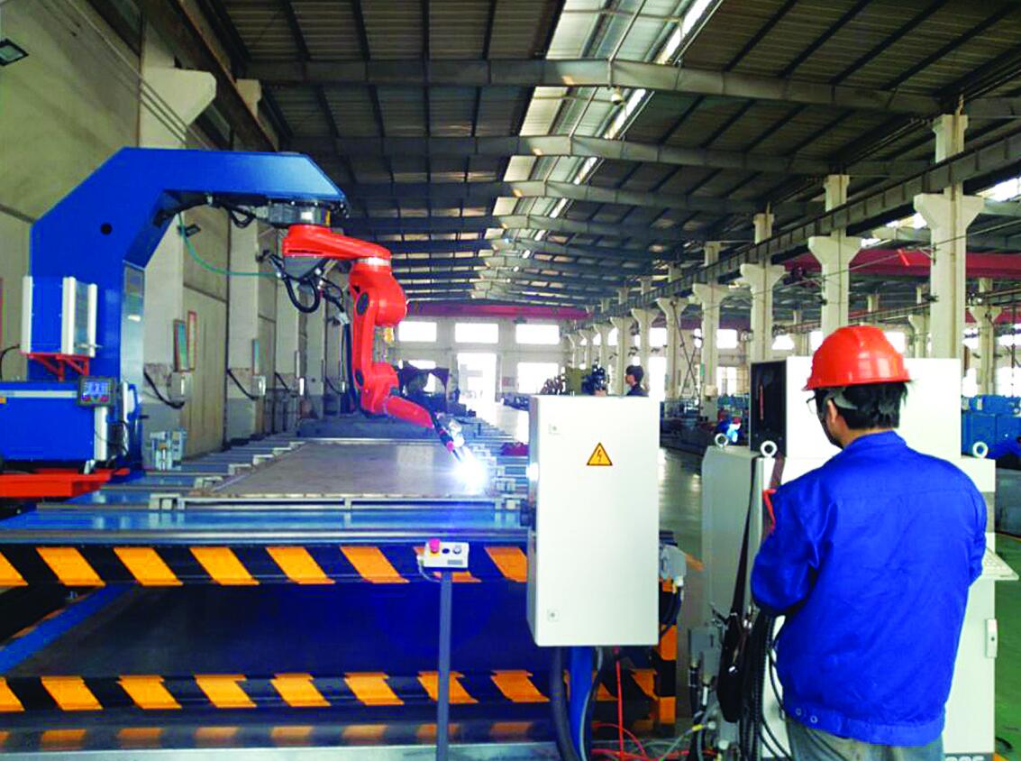 正在車間的公司負責生產的副總經理湯日高說,焊接機器人不但改善了工人的勞動條件,同時也提高了生產效率,一個焊接機器人可頂10個熟練工,而且可以實現連續生產。