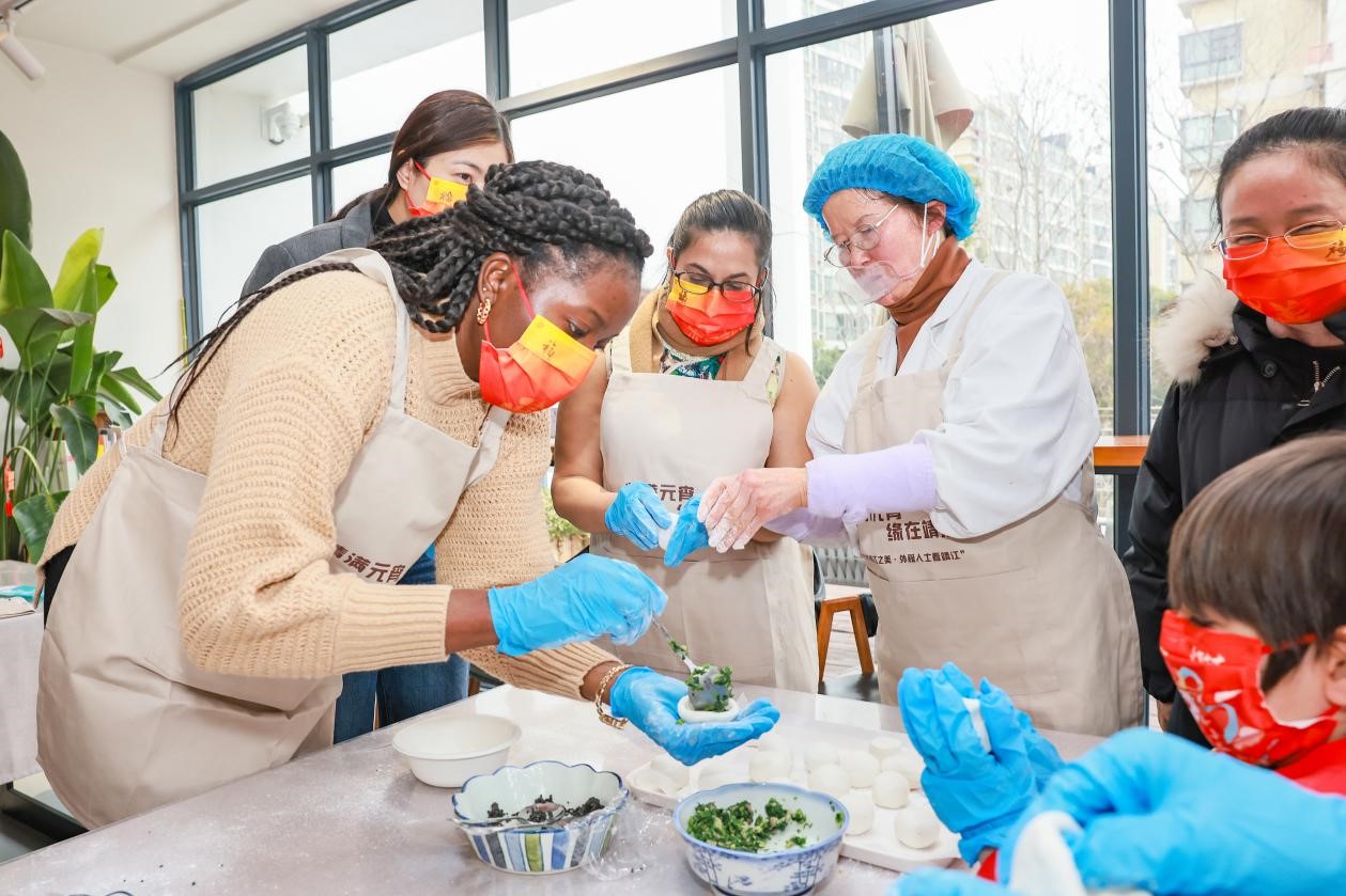 元宵節自然少不了象征團圓甜蜜的湯圓。揉面、包餡、搓圓……外籍友人跟著點心師傅的手法,有樣學樣。從一開始的不得要領,到后來漸入佳境,做出的湯圓白白胖胖、惹人垂涎。不一會兒,湯圓下鍋煮熟,大家圍坐品嘗美味,滿堂溫暖融洽。來自埃及的默罕默德·納賽爾說:“這是我第一次在中國過元宵節,吃著大家一起動手做的元宵,感覺很溫馨,很有團圓的味道!”