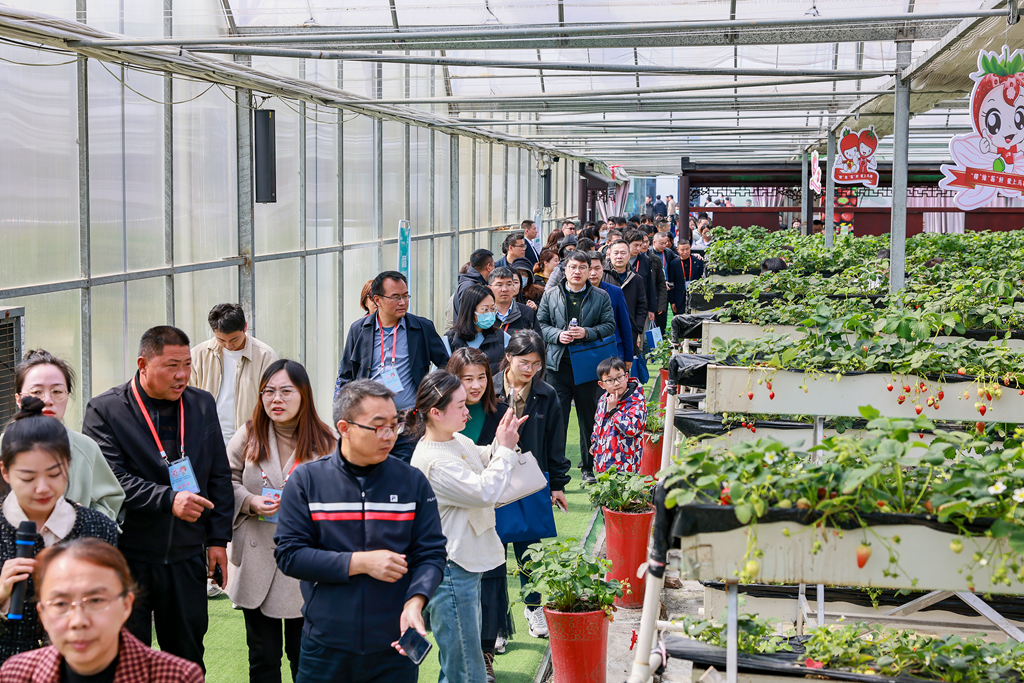 3月19日,在靖江市馬橋鎮,長三角草莓產業技術創新聯盟成立,2023靖江旅游節——櫻花草莓節同時開幕。