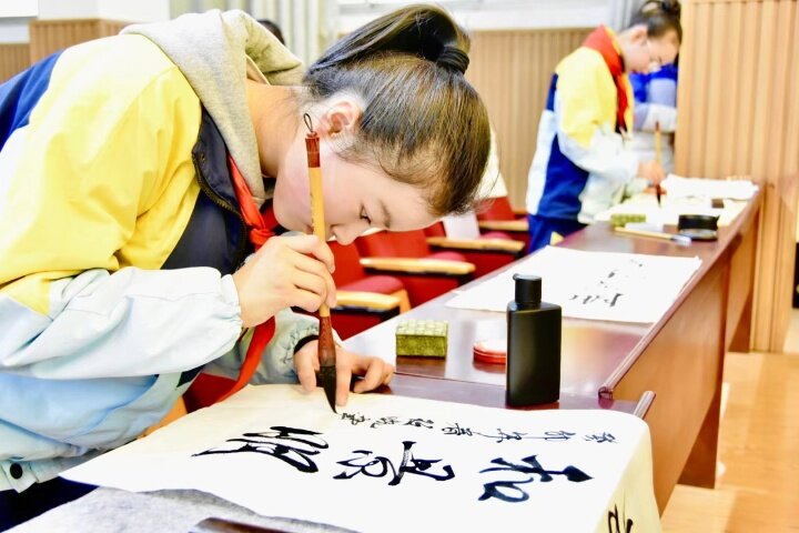 主會場報告廳前,書法老師帶著學生們一起書“春分”,大家揮毫潑墨,筆墨凝香間寫下最溫柔的春分詩“春分雨腳落聲微,柳岸斜風帶客歸”、最純凈的春分詩“初晴山院里,何處染囂塵”、最溫暖的春分詩“從今造物尤難料,更暖須留御臘衣”。寫“春分”小組的學生們則來到學校逸凡園,在大樹下、花叢中尋找春天。和煦溫暖的春風、冒出嫩芽兒的細長枝條、操場邊剛探出頭的小草、穿著不同衣服的花苞……學生們用眼看、用鼻嗅、用耳聽、用手摸,感受春天的斑斕和生命的奇跡。