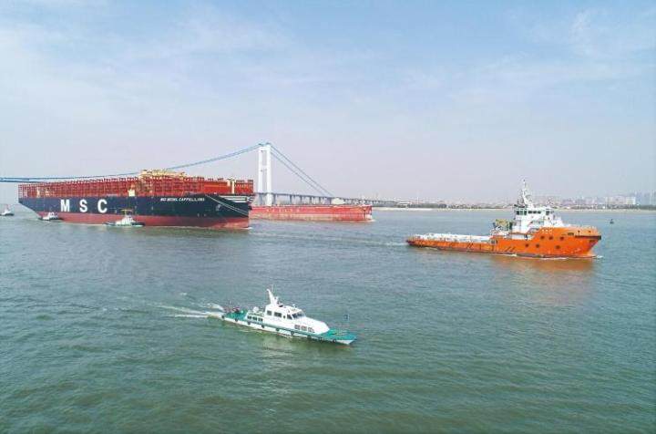 泰州市造船行業(yè)再傳捷報:3月27日上午,全球最大裝箱量集裝箱船“鑫福104”在泰興揚子鑫福船廠離泊,安全拖帶出江。 這是由我國自主研制、泰州制造的海上“巨無霸”和“帶貨王”。據(jù)了解,這一集裝箱船融合了我國造船企業(yè)在集裝箱船領(lǐng)域最新研發(fā)成果及智能化手段,具有安全、節(jié)能、環(huán)保、智能化程度高等優(yōu)勢,被稱為目前全球最頂級的集裝箱船。 該船船長399.99米,型寬61.3米,最大裝箱量高達24346標箱。該船甲板面積達24000平方米,相當于3.3個標準足球場,最大堆箱層數(shù)可達25層,滿載后可達22層普通住宅的高度。 “鑫福104輪”采用“兩吊四綁”的方式拖帶出江,該船水面以上最大高度接近50米,航行期間要經(jīng)過江陰大橋、滬蘇通大橋、蘇通大橋,水面以上最大高度接近所航經(jīng)大橋主通航橋孔通航凈空高度。該船在離泊前割除了5層上層建筑,以拖帶的方式由泰興揚子鑫福船廠拖至江蘇太倉揚子三井船廠。 據(jù)悉,江蘇揚子江船業(yè)集團共手持該系列船訂單6艘,分三批建造,預(yù)計將在2023年全部交付。本次完成拖航作業(yè)的“鑫福104”是該公司建造的第3艘,第1艘已于今年3月11日交付并開啟運營首航。