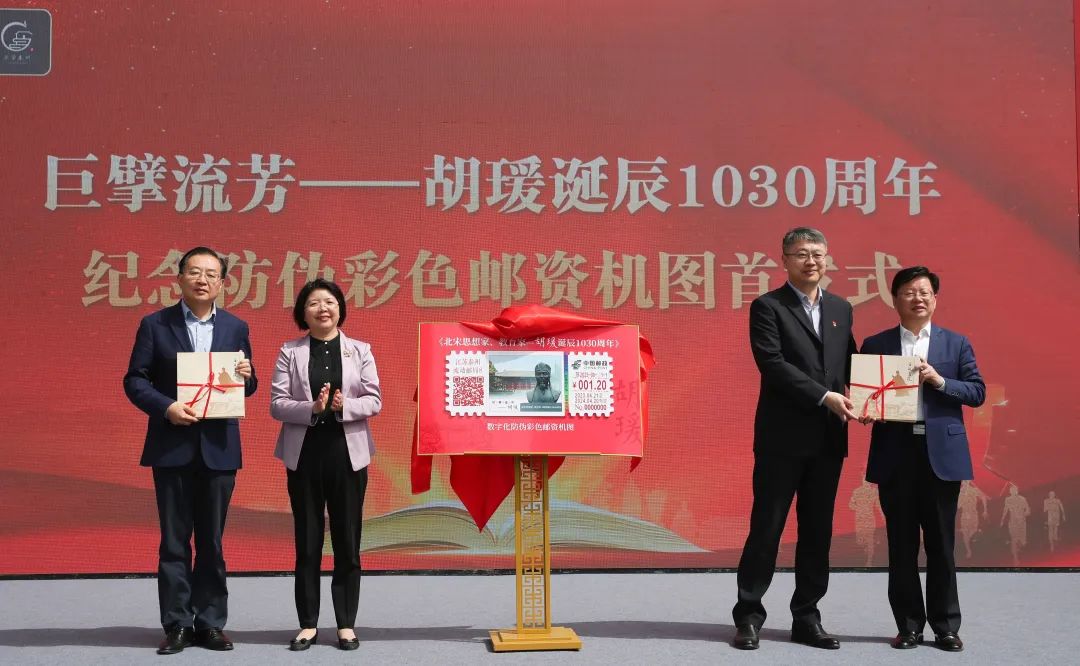 泰州素有崇文重教、詩書傳家的優(yōu)良傳統(tǒng)。北宋時(shí)期,泰州先賢胡瑗先生倡導(dǎo)的“明體達(dá)用”之學(xué),讓學(xué)問從書齋中走了出來,使百姓“日用而不覺”。 今年是胡瑗先生誕辰1030周年。活動(dòng)現(xiàn)場(chǎng)舉行了巨擘流芳——胡瑗誕辰1030周年紀(jì)念防偽彩色郵資機(jī)圖首發(fā)式,并向市教育局、安定書院贈(zèng)送郵冊(cè)。