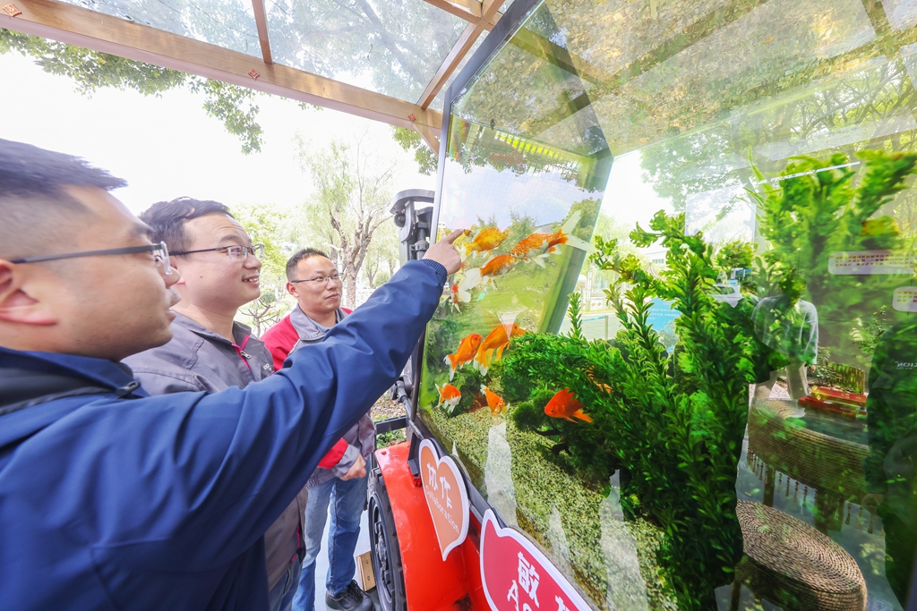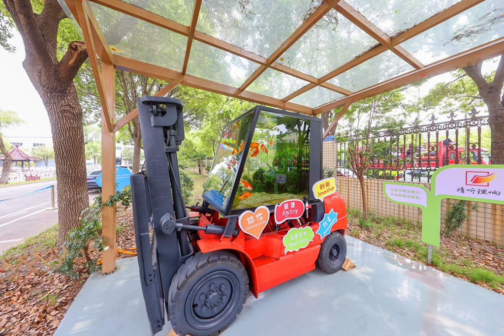 近日,江蘇省靖江市一家企業的廠區里,廢舊叉車搖身一變,成為錦鯉悠游的水族箱。小小的環保巧思,讓“叉車水族箱”所在的涼亭倍添趣味,成為企業職工放松身心的好去處。 廢舊叉車藏身倉庫角落許久,如何處置?企業職工奇思妙想,提出改造“叉車水族箱”的構想。大家一起精心設計魚缸的尺寸和重量,制作完成后,將魚缸安置于廢舊叉車上,又在魚缸內精心布置了假山、水草。缸體注滿自來水,倒入十余條錦鯉,儼然一幅錦鯉穿行水草的流動圖畫。 這個安置在企業涼亭的小型“自然生態圈”,吸引了不少企業職工駐足觀賞,給冷冰冰的工業品賦予生命力,不僅拓展了企業職工的創意思維。 “我們都非常喜歡這個‘叉車水族箱’,本來它都被遺忘在角落了,經歷一番改頭換面,重新又回到我們身邊,成為生活的一部分,很有意義。”凱傲寶驪(江蘇)叉車有限公司安全工程師蔣建鋒邊觀賞邊說。 最近,企業和所在街道還依托“叉車水族箱”所在的涼亭,進一步延展創意,種上綠植花草,布置草編桌椅,供應各類書籍,打造“靖聽理響”宣教活動站點,方便職工們在休息時間看書、逗魚、賞花,在心靈休憩時增加更多的“養分”。