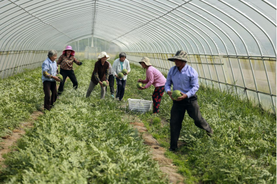 5月16日,泰州市姜堰區婁莊鎮婁東村60多畝大棚西瓜種植基地首批特小鳳西瓜成熟上市,20多名村干部、志愿者和瓜農一起摘的摘、捧的捧、抬的抬,運送到田頭套袋包裝,再送往市場。“家里的2畝地流轉給村里種植西瓜,我到這里上班,采摘搬運,活計輕松,大家一起說說笑笑,每天收入80元。”70歲的村民于宏林笑稱,大棚里“長”出強村富民甜蜜“瓜”。