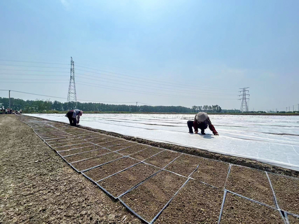 育好的秧苗,會被蓋上薄膜進行暗化處理,薄膜透氣性好、受熱均勻、出苗率高,鋪放在露天農田中,等待20多天就可以進行插秧。為了讓水稻秧苗茁壯成長,農民們前期已經完成了平整場地、修繕溝渠、翻耕施肥等準備工作。罡楊鎮田緣家庭農場負責人趙永菁表示:“接下來,準備上水泡田,估計要浸泡10個小時,10個小時以后把水放掉,能起到催芽的效果。”