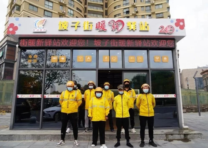 坡子街·暖“新”驛站位于海陵區坡子街商圈東側,面積約30平米,集“政治引領、宣傳教育、黨群服務”三大功能于一體,面向新業態新就業群體和有需求的群眾提供多功能服務,24小時全天開放,驛站以“家理念”為核心,制定“6+1”建設標準,內部配備充電臺、休息桌椅、醫藥箱、空調、微波爐、飲水機六大設施,設立“紅海聚力”引導牌。同時,內部設有觀影休閑、圖書閱覽、臨時更衣、心愿分享等特色功能區,外部規劃電動車停車位,切實讓新就業群體“累了能歇腳,渴了有茶水,休息有書讀,交流有場所”。