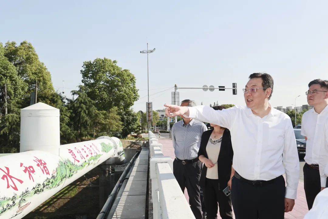 醫藥高新區(高港區)許莊河總長約10.5公里,流經刁鋪街道、許莊街道,具有行洪、輸水、灌溉等功能。朱立凡一行來到許莊河,仔細詢問河長制工作和幸福河湖建設情況。朱立凡指出,全面推行河長制是落實綠色發展理念、推進生態文明建設的必然要求,要統籌水資源、水環境、水生態治理,以“問題在水里,根子在岸上”為切入口和突破口,切實做好雨污分流、截污納管、清污疏浚、排口整治等各項工作,努力實現河暢、水清、岸綠、景美。