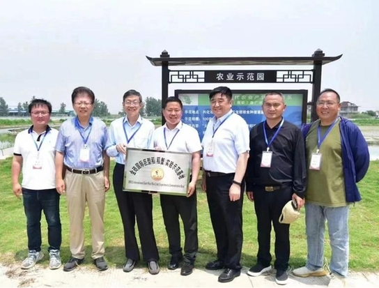 5月28日,“金磚國際巨型稻實驗示范基地”落戶興化市。當天上午,位于釣魚鎮的興化現代農業產業示范園內一片忙碌景象,農民們在歡聲笑語中將一株株“巨型稻”秧苗插入肥沃的土地。 夏新界,中國科學院亞熱帶農業生態研究所研究員,是一位從事植物分子遺傳學、遺傳育種和分子生物學研究的海歸科學家。2005年回國后,夏新界潛心研究我國水稻育種,歷經十余年,夏新界帶領他的團隊成功培育出“巨型稻”這一超高產優質水稻新種質。在插秧現場,夏新界介紹,“巨型稻”是在現有優異水稻種源的基礎上,經突變體篩選、秈粳稻與野生稻遠緣雜交培育而來,不通過任何轉基因技術手段,100%為非轉基因水稻,研發“巨型稻”的初衷是高產、優質。 據了解,“巨型稻”株形高大,根深葉茂,稻株成長后高度可達1.8米至2.2米,其蓄水深度可達50厘米至70厘米,栽植“巨型稻”的同時,可以養魚、蛙、蝦、蟹、鴨等水產經濟動物,為建立“稻漁共生”生態系統提供了優良環境。
