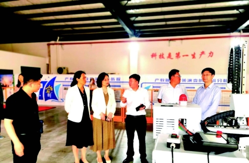 一臺臺機器人教練機一字兒排開,兩個小型教室的課桌上都置放著電腦電子元件,實訓車間的機器“吃”進材料“吐”出產品,夏日的陽光灑落在嶄新的籃球場上……這是省興化市戴南緊固件產業園產教融合實訓基地的場景。