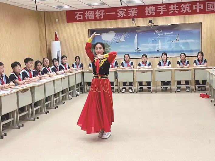 五月的梔子淡香剛剛消散,又迎來六月火紅耀眼的石榴花。日前,泰州市海軍中學和新疆昭蘇縣第六中學共同開展“書信手拉手”云隊課活動,以豐富多彩的形式共建民族情、同筑中國夢。 當天下午,泰州市海軍中學與昭蘇縣第六中學的60名少先隊員相聚在各自的少先隊活動室,伴隨著中國少年先鋒隊隊歌響起,兩!笆褡岩患矣H·攜手共筑中國夢”線上聯(lián)誼活動拉開了序幕。
