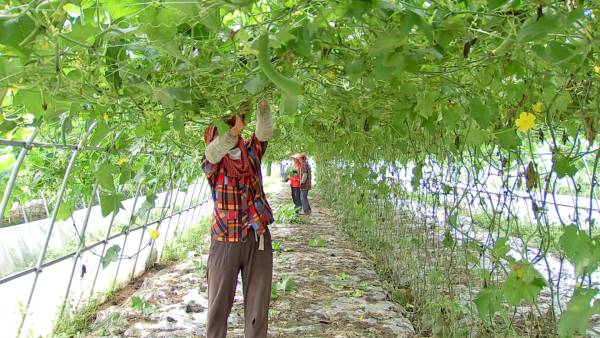眼下,正是絲瓜成熟的季節,海陵區有機無公害農產品龍頭企業森德有機農業的100多畝的爆竹香絲瓜正大面積成熟,開園采摘。大棚里,一根根翠綠的絲瓜掛滿藤蔓,工人們熟練地用剪刀從果柄處剪下一個個成熟的絲瓜,現場一派繁忙的豐收景象。據介紹,企業全部流轉的300多畝土地來自海陵區城東街道魏徐村,除了按照每年每畝1600多元的價錢返還農戶租金外,還返聘周邊的農戶來參與采摘工作,為他們又增加了一份收入。采摘工人劉洋女說:“我們住在這附近,有時候來薅草,摘絲瓜,一天也能賺100元。”