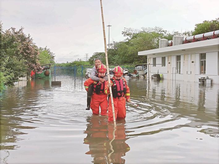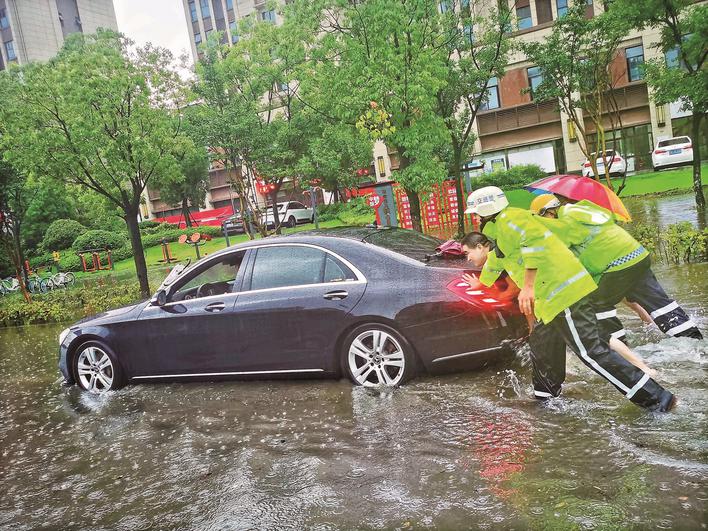 泰州市住建部門第一時間啟動應急預案,組織上路巡查處置積水問題,共出動13個班組120人、應急車輛12輛、水泵23臺。市政工作人員徹夜未休,通過清掏雨水井雜物、水泵強排等措施,18處積水較深的點位在雨勢減弱后水位逐漸下降。強降雨下,河水上漲出現(xiàn)向城內(nèi)倒灌現(xiàn)象,市區(qū)部分道路、小區(qū)出現(xiàn)積淹情況,泰州市住建部門持續(xù)加大人員、機械設備投入力度,加強安全提醒,全力做好道路、小區(qū)防汛應急處理工作。此外,加強建筑施工防汛監(jiān)管,成立防汛突擊隊應急搶險,全面組織災情預防和抗洪搶險工作。各建筑項目部均備有灑水抽水車、潛水泵等排澇設備,隨時準備投入排澇搶險工作。 全力服務群眾,維護社會秩序 7月7日上午,在海陵區(qū)泰祥路上,積水最深處可達大腿根處,路上的汽車接連“趴窩”,行人和車輛通過時無法辨認路面情況,極易發(fā)生危險。泰州消防救援支隊救援人員兵分兩路,一組人員迅速找到排水點開展排水作業(yè),另一組在路口指揮車輛并幫助行人安全通過深水區(qū)域。針對泰州市16處橋梁涵洞、低洼易澇點和老舊小區(qū)等風險區(qū)域,泰州消防救援支隊集中調(diào)派力量開展巡防前置備勤,并根據(jù)受理的警情特點,“一點一策”實施救援力量布控。截至7日12時,泰州市消防救援部門共接報內(nèi)澇警情73起,累計排水7500余立方米。