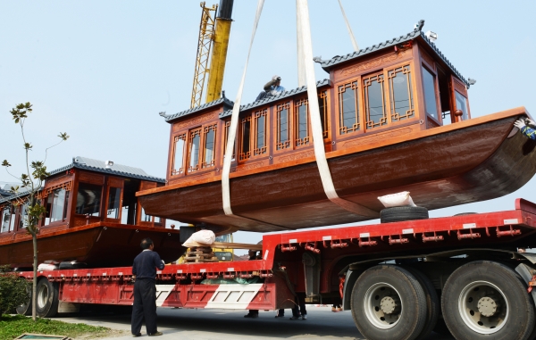 “一般而言,竹泓木船制造包括選料、配料、破板、刨板、拼板、投船、打麻、油船、下水等9道工序,每一道工藝都有講究。”周永干如數家珍。以選料為例,小船的船板一般采用杉木,大船用花旗松;而船篷一般采用刺杉,因質地較軟便于做各類造型。 水鄉興化,無船不行,獨特的地理條件孕育了木船產業。“當時,除了本地的,還有南通、鹽城、高郵、寶應等地漁民慕名而來,購買或定制各類漁船。”星亞木船公司負責人李玉云回憶,曾有東臺客戶前來定做兩條舢板船,“一等就是5個月,吃住都在鎮上。”最高峰時,這個小鎮集聚了近百家造船作坊。 轉折發生在2000年前后。因公路的快速發展、木船市場的飽和以及水泥船的競爭等多重因素,竹泓木船風光不再、訂單銳減,造船作坊也萎縮到10余家。 就在傳統手藝人彷徨之際,一筆海外大訂單“從天而降”。2005年,一名荷蘭客商輾轉找到竹泓鎮,下了170條中式木船訂單,想借此打開歐洲旅游市場。“當時,鎮上都是家庭小作坊,且之前沒有制作這類木船的經驗,任何一家都沒有實力單獨接下這筆大訂單。”周永干主動牽頭,召集20多人組建木船制造小組,歷時一年半,最終合作完成這筆訂單。 一筆海外訂單,讓竹泓木船產業絕處逢生。這筆訂單給當地政府和木船制造手藝人帶來思考:當木船逐漸失去交通價值,靠什么找回市場? 進軍文旅 走進星亞木船公司,一條條畫舫船映入眼簾。打開企業宣傳手冊,過去常見的漁船已難覓蹤影,取而代之的是畫舫船、尖頭船、歐式木船、藝術欣賞木船等系列觀光旅游船。 “北京冬奧會期間,在冬奧村‘文化中國’展示區,20多項非遺代表性項目、100多件非遺展品中,就有我們企業生產的仿‘黑石號’濃縮版商船。”李玉云說,非遺小木船“游”進冬奧村,向全世界展示竹泓木船傳統技藝和文化底蘊。
