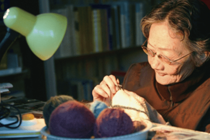 2005年冬,室外氣溫急劇降至零度以下。夜深了,一位年逾古稀的老人戴著1400度近視、200度散光的眼鏡,端坐在臺燈下,神情專注,一針一針地織著毛衣……