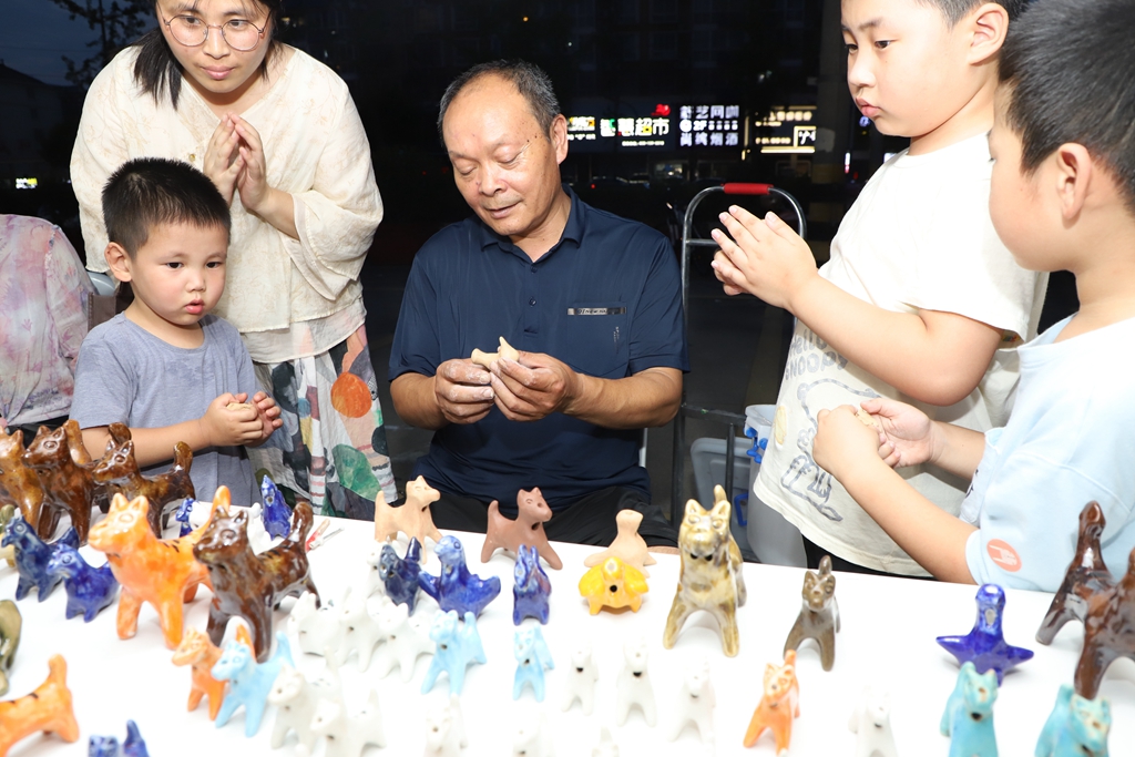 “帶了20斤無花果,半個小時就賣光了。”在特色產(chǎn)品展銷區(qū),城南辦事處昆圣村種植戶陸靖帶來了自產(chǎn)無花果和紫油桃,半個小時內(nèi)售罄。非遺文化展銷區(qū)內(nèi),有著50多年泥狗子制作經(jīng)驗的省級非遺傳承人錢伯平正手把手教泥狗子的制作方法,西來醬姜片、竹編等非遺文化也被“帶”到現(xiàn)場,吸引了不少市民群眾圍觀;走進惠民(志愿)服務(wù)區(qū)域,暑期親子教育以及安全教育、健康義診、愛心義剪、書畫教學(xué)……每個特色志愿服務(wù)“攤位”前都擠滿了人,市民以“趕集”的形式逐一逛遍每個志愿攤位,在歡聲笑語中感受文明新風(fēng)。