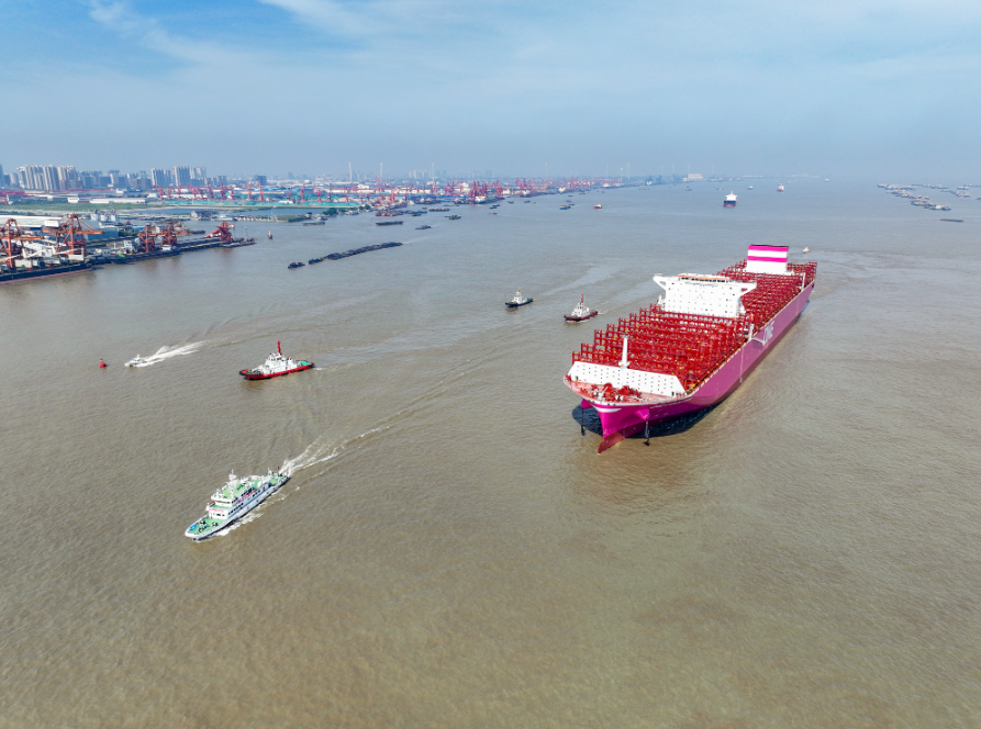 △集裝箱船出江試航現場 今年以來,揚子江船業新接訂單“進度條”不斷刷新,掀起了新一輪生產經營高潮。上半年累計交付新船28艘,按照生產計劃,預計全年交付新船57艘。 造船業是勞動密集型行業,靖江船企的造船模式是總裝造船,屬于離散型、小批量、定制化生產。對船東而言,市場瞬息萬變,時間就是金錢,能否按時拿到新船至關重要。
