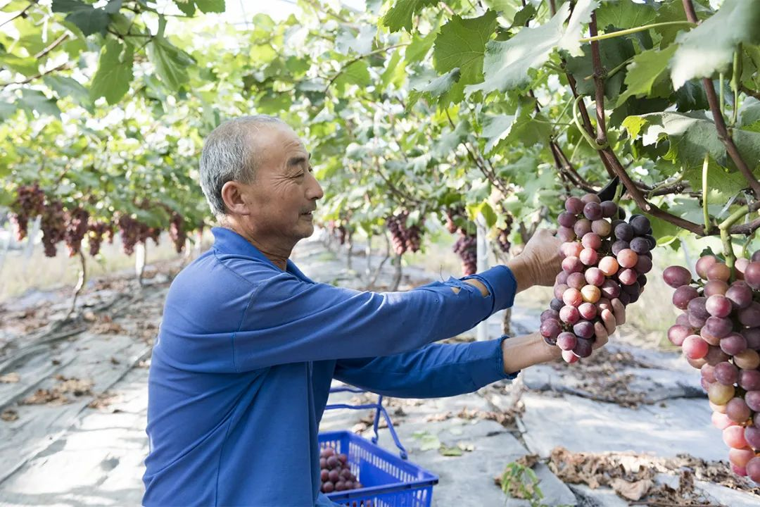 一張可折疊桌、幾個展架、幾張凳子……麒麟灣冬林果園的大棚搖身一變成了直播間,正在開展助農直播活動。郁郁蔥蔥的綠葉和結滿碩果的葡萄藤,讓人們隔著屏幕也能感受到泥土的氣息。