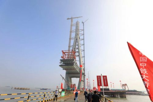 2023年是常泰長江大橋攻堅克難的關鍵一年。今年,大橋還將完成主跨388米公鐵兩用鋼桁拱橋跨中合龍、南北兩岸合建段引橋和普通公路接線引橋全線貫通。