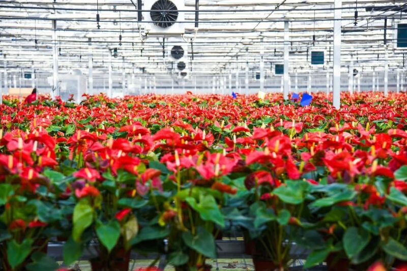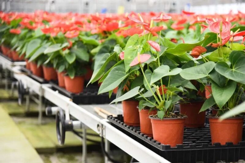 打造產業鏈,提升價值鏈。在蘇中園藝自主研發的“61069”型智能溫室大棚里,熱帶雨林的紅掌在海陵生根發芽,無論室外天氣多么惡劣,室內始終溫暖如春,置身花海中有一種別樣的浪漫。