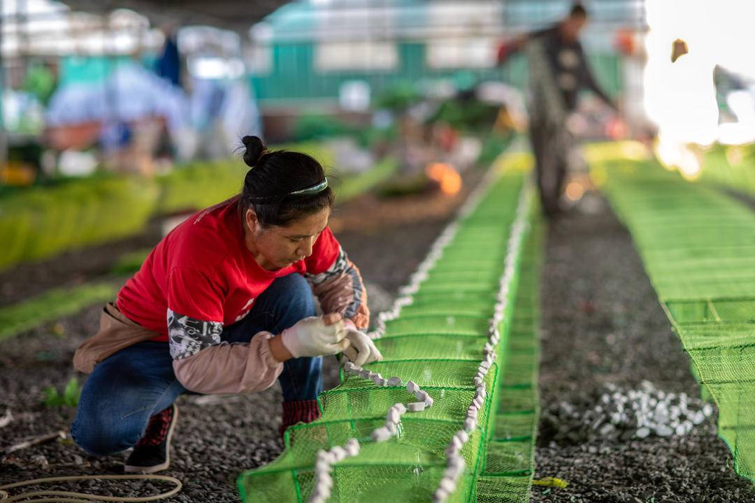 秋陽下,村民手拿漁網針,熟練地“穿針引線”,面前的網箱有序鋪陳,構成一幅優美的鄉村圖畫。這里是興化市垛田街道戴家村。 戴家村是蘇中地區手工漁網編織生產基地。從20世紀90年代初到現在,戴家村的蝦籠產品從單一品種擴大為對蝦籠、螃蟹籠、河蝦籠、百腳籠等四大類若干規格品種,銷售渠道不斷拓寬,多種漁網產品銷往全國各地,部分產品出口國外。漁網市場也從分散的家庭作坊式生產轉型到市場規模化經營,全村漁網產業逐漸形成了市場牽龍頭、龍頭帶農戶、農戶連客商的格局,漁業產業正成為村民增收的“發動機”。 目前,坐落戴昭線戴家段規模生產大戶30戶,生產場地大棚占地面積約15畝,漁網年銷售達億元以上,家庭代加工散戶近900戶,全村從事漁網編織人員1700多人,支付勞務報酬近3000萬元,因為漁業、漁網產業,戴家村呈現出“人人有事做、天天有收入”的生動局面。戴家漁網編織還被列為非遺物質文化生產基地,成了戴家村的特色產業。 戴家村也是遠近聞名的水產養殖大村,水面5746畝,其中精養水面2746畝,提水養殖1500畝,河溝1500畝,水面資源豐富。為了助力村民水產養殖,該村投資200多萬元實施了魚塘的標準化改造和基礎設施投入,提升養殖效益;加強與院校水產科研機構學者、教授專家聯系,定期組織養殖培訓,提高養殖水平。水產養殖、漁網編織帶動了相關配套產業的發展。全村魚蟹飼料、藥品銷售,魚蟹、漁網銷售,成魚捕撈、物流等產業相繼涌現,并發展壯大,從業人數已達600多人,年收入達1200多萬元。