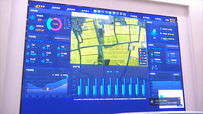 “無人收割機收割速度非常平穩,可以24小時不間斷地收割,同時無人收割機的機損率不會超過1.5%。”盯著大屏飛行器作業的南農大駐園博士方鵬說。 “無人植保、無人施肥、無人耕作、無人收割,種管收都是無人作業,所以稱之‘無人農場’。”興化市現代農業發展服務中心主任周德銀說。“無人農場”全稱是“5G+無人農場”,2022年通過項目實施,核心區內每畝稻田可節本增效120元以上,稻米產量可增加5%到10%,精米蛋白質含量≥7.5%。該項目入選工信部“2022年移動物聯網應用典型案例”。 興化是全國重要的商品糧生產基地,是全省河蟹、青蝦、小龍蝦、銀鯽主產區之一。如何從農業大市向農業強市轉變,首要任務就是要加快傳統農業的轉型升級。為加快糧食數字化生產,去年以來,興化市開始建立省級現代農業產業示范園5G智慧農場,圍繞農田信息5G全覆蓋獲取、農田管理5G智能化作業、智慧農場5G大數據平臺等進行建設,促進稻麥生產領域的技術創新。