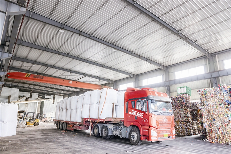 當達到一定收購量時,廢品回收站點聯系靖江市盛世再生資源有限公司,由該公司安排清運車輛將收購的可回收物運往再生資源交易市場。