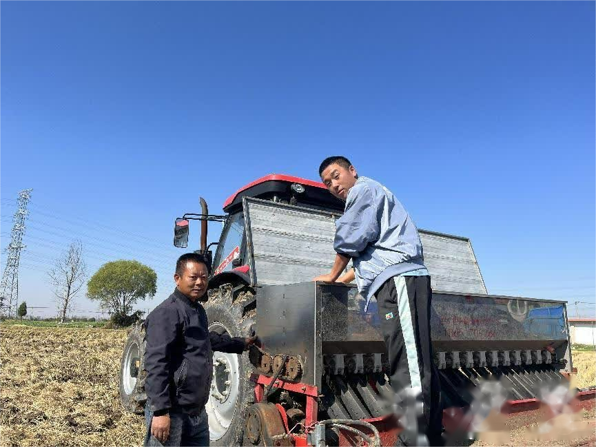 “農機使用關乎糧食產量,必須講究。”27歲當上“種田大戶”,十年來,趙永菁的農場規模越來越大,技術和經驗也隨之提升。他拿眼前這塊田舉例子,水稻田種麥前需要深翻,如果犁耕的機器達不到一定深度,麥子下田進不到土壤底下,麥苗生長就會因為養分不夠直接影響來年收成。“這也是大家共享農機的初衷之一,希望都用上先進的機器。”趙永菁說道。 “老趙,我來看一下開溝機現在用不用。”罡楊鎮云琴家庭農場農場主常家旺從自家農場趕來。他的農場今年種了400畝水稻,眼下收割進度近一半。他的農場也有十幾臺農機,“拖拉機我也有,不過老趙這個開溝機已經套在拖拉機上了,我就直接開回去下田用就行,省事兒。”常家旺說,大家平時農機共享,農忙時互幫互用,既節約時間又節約成本。