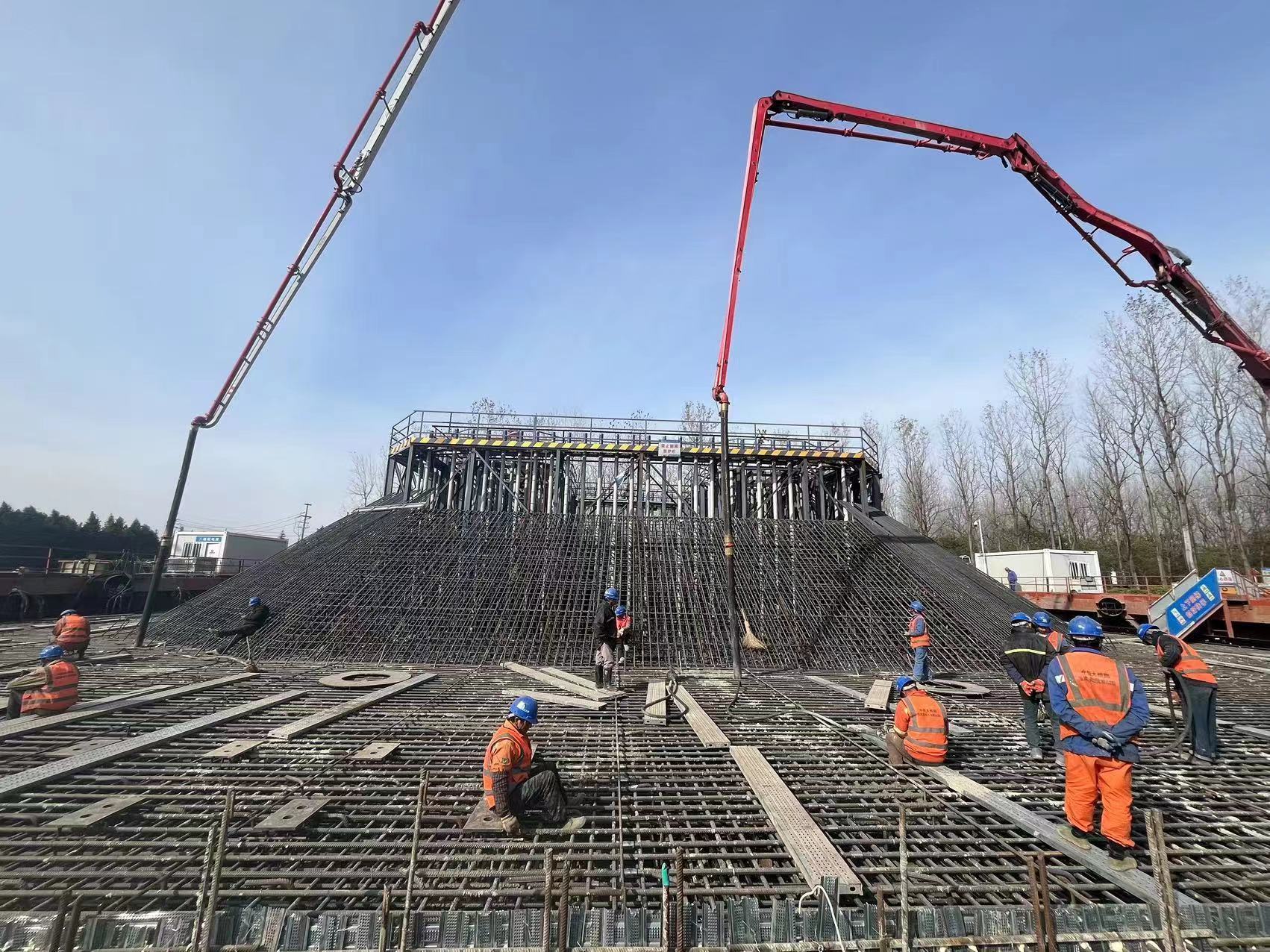 近日,經過40個小時不間斷施工,張靖皋長江大橋南航道橋北主塔承臺最后一層順利完成澆筑,標志著北主塔承臺施工收官,為大橋全面進入主塔施工奠定了堅實基礎。 張靖皋長江大橋ZJG-A2標段位于靖江市馬洲島,橫跨如皋、張家港、靖江三市。大橋北接G40滬陜高速,南接張家港疏港高速,高速全長約為29.8公里,全線采用高速公路標準建設,其中跨江段為雙向八車道、設計時速100公里;兩側接線段為雙向六車道、設計時速120公里。 由于進入冬季氣溫較低,為確保澆筑工作的順利推進,在施工過程中,采取加強現場動態管理,嚴格落實安全質量技術交底,按照標準化施工要求進行澆筑、振搗。北主塔承臺完成澆筑工作時間緊、任務重,從9月初開始,數十名現場技術員及上百位一線施工人員不懈奮斗,先后順利完成了主塔承臺區域的三層混凝土澆筑,在保障了施工質量的前提下按時推進了項目施工進度。 張靖皋長江大橋作為“世界橋梁第一跨”,其南航道橋主跨2300米。大橋南航道橋北主塔承臺區域平面呈現八邊形,整體共使用各類鋼筋3425噸、C40混凝土近4萬方、冷卻管132.7噸及各類預埋件等。大橋建成后,將對推動長三角區域一體化發展、長江經濟帶發展具有積極影響。