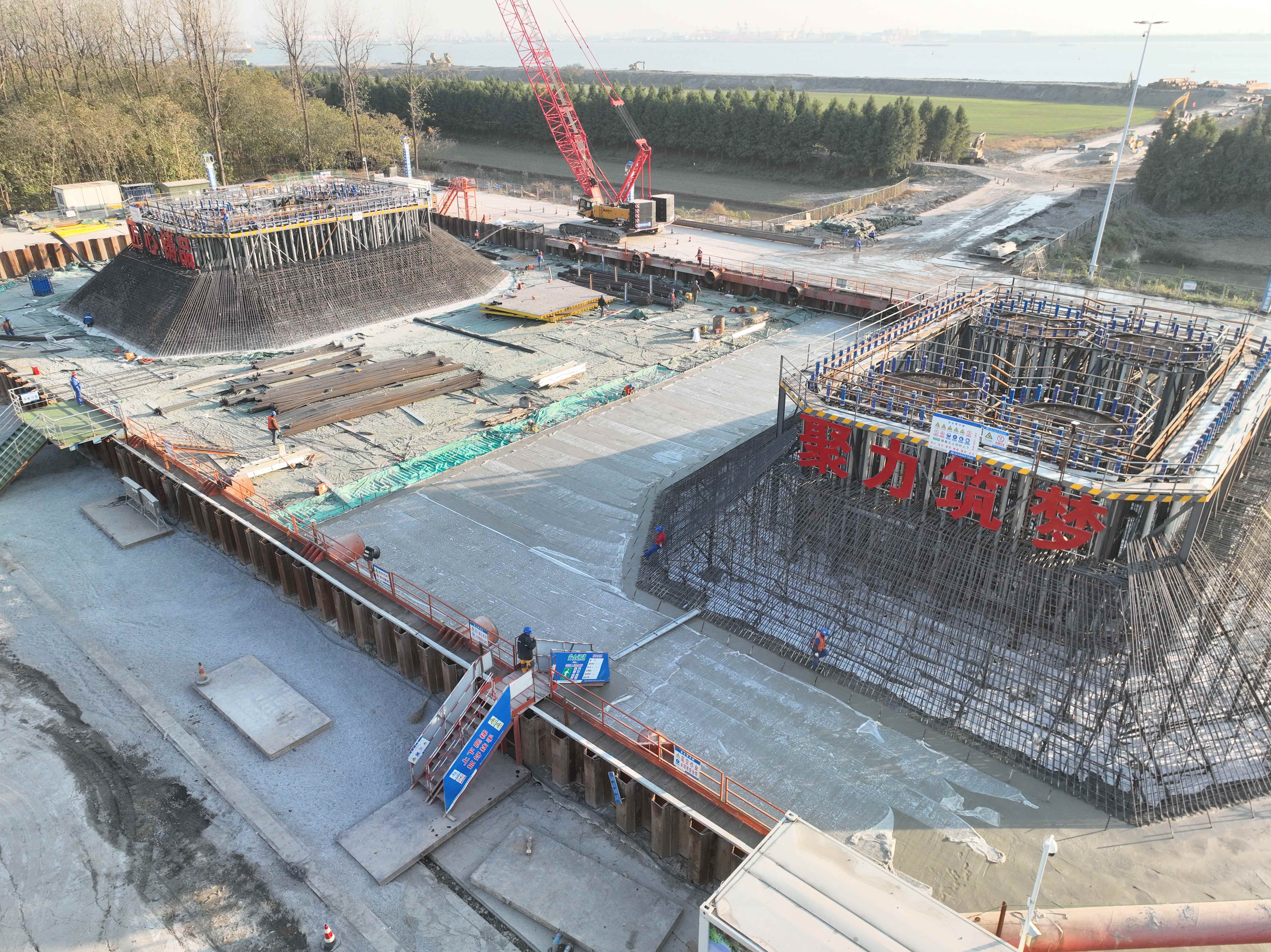 靖江:張靖皋長江大橋南航道橋北主塔承臺完成澆筑