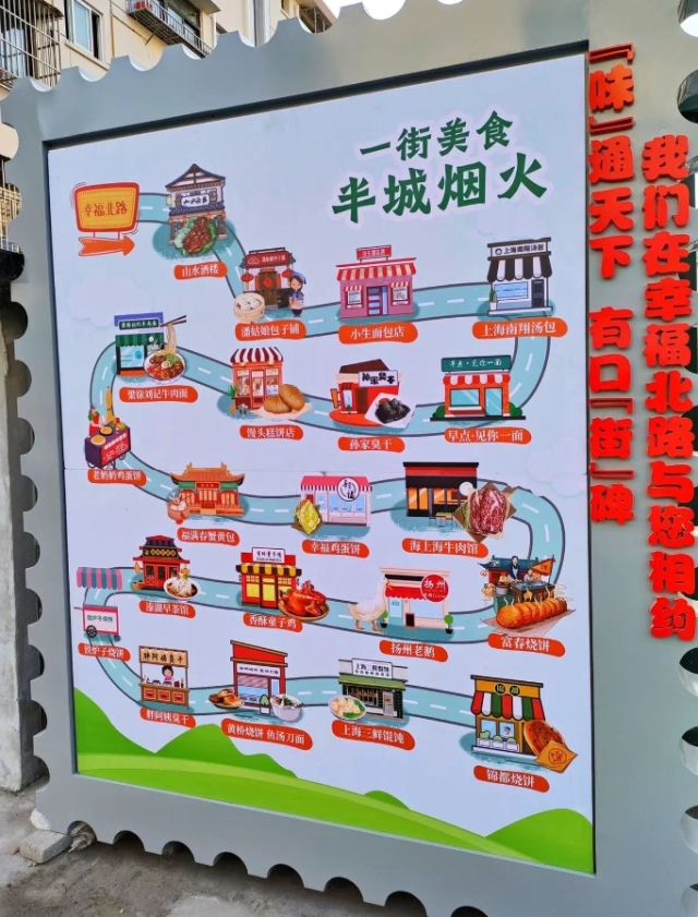 今年以來,姜堰區(qū)以“齊心共治‘兩小’難題,刷新擦亮‘宜居’品牌”基層黨建項(xiàng)目為抓手,通過探索黨建引領(lǐng)“兩小”改造新模式,推動(dòng)背街小巷、老舊小區(qū)改造品質(zhì)提升。天目山街道在幸福北路打造以“家門口、煙火氣、慢生活”為特點(diǎn)的“宜商”勝地,讓“小食小吃”“小修小補(bǔ)”規(guī)范有序地貼近百姓生活,讓幸福北路街區(qū)煥發(fā)文明宜居“新魅力”。 走進(jìn)幸福北路街區(qū),記者觀察到街區(qū)中心位置立了“網(wǎng)紅小吃打卡地圖”。這份地圖囊括該條街網(wǎng)紅小館子,包括“梁徐牛肉面”“潘姑娘包子鋪”“南翔湯包”等小店和“錦都燒餅”“武漢黑鴨”“老奶奶雞蛋餅”等姜堰本土認(rèn)證的“名小吃”。 光明社區(qū)黨委書記顧俊龍說:“‘網(wǎng)紅小吃打卡地圖’今年10月設(shè)置,此舉不僅滿足吃貨需求,同時(shí)帶動(dòng)街區(qū)經(jīng)濟(jì)發(fā)展,進(jìn)一步扮靚幸福北路這片‘網(wǎng)紅打卡地’。”