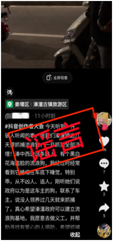 10月31日,姜堰一網民通過抖音平臺發布“這幾天要抓捕流浪狗,一旦抓到全部活埋”等不實信息,引發網民關注討論,產生不良社會影響。