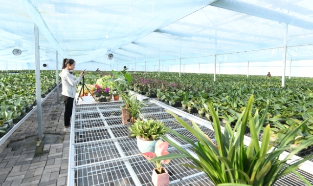 2021年,退役軍人張杰在姜堰區顧高鎮注冊成立泰州杰杰高農業發展有限公司,流轉200畝土地種植園藝花卉。其中,連棟大棚面積20畝,用于蝴蝶蘭種苗及成品花卉培育。花卉種植項目不僅充分發揮了土地經濟效用,還為附近村民提供就業增收機會。 張杰介紹說,基地在顧高鎮每年都有用工,主要以當地留守人員為主,基地對村民進行花卉種植常識培訓以及組盆、花卉造型技藝培訓,目前每天有十幾個村民在基地工作。 蝴蝶蘭因花姿如蝴蝶飛舞而得名,鮮艷喜慶、寓意美好,素有“蘭中皇后”的美譽,深受泰州市民喜愛。經過幾年的探索與栽培,基地的蝴蝶蘭種植規模不斷擴大,品種不斷完善,如今已有八大系列60多個品種,其中“大辣椒”“滿天紅”“小孔雀”成為最具代表性、最受青睞的品種。 現在花卉已經進入年宵花卉銷售旺期,每天有3輛卡車來拉貨,有五六百盆七八千株的銷量。一些年輕人喜歡的白色、粉色、橙色的小清新色彩成為今年市場的新寵。基地一共種植了15萬株蝴蝶蘭,可以滿足不同層次需求的人來選購。 科技賦能是農業高質量發展的關鍵因素。由于蝴蝶蘭在氣溫20℃左右生長最為適宜,長得更壯、顏值更高。這里的溫室安裝了數字化農業系統,可根據蝴蝶蘭生長需求自動調節相應的控溫、控濕、遮光設備,對花卉的品質、環境溫度控制均衡、穩定,大大減輕了現場管理的力度和頻次。 目前,花卉生產基地年產蝴蝶蘭和繡球等種苗40萬株、成品蝴蝶蘭15萬株,畝均產值超過20萬元。據介紹,基地將繼續推進大棚設備及溫控系統改造升級,進一步降低電能、減少農藥和化肥使用,提高畝均收益。 |