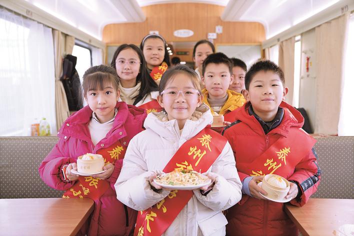 “這是蟹黃包和干絲,這是我們江蘇泰州特色早茶,邀請您嘗嘗。如果好吃的話,也誠摯邀請您下次到泰州嘗美食、賞美景。”8點多,來自泰州市鳳凰小學的小“泰寶”鐘秋伊和小伙伴們走進餐車,向就餐的旅客推介泰州早茶,分享泰州味道。“嗯,味道真不錯,有機會一定去你們泰州嘗嘗全套早茶。”來自遼寧的劉先生品嘗了蟹黃包,贊不絕口。 除了在列車上推薦泰州早茶外,泰州文旅部門還預先制作了一批泰州早茶圖形展板,內容包括泰州早茶中的典型元素,如干絲、湯包、蟹黃包、魚湯面、黃橋燒餅等,在哈爾濱冰雪大世界、雪鄉、中央大街等知名景點,小“泰寶”們除了手持展板,開展旅游宣傳推廣活動外,還會身著京劇服飾,表演《貴妃醉酒》等梅蘭芳大師的經典曲目。此外,小“泰寶”們將發放旅游邀請函,盛情邀請“小凍梨”“小熊貓”“小砂糖橘”等全國各地的小朋友們,到泰州品美食、賞美景。