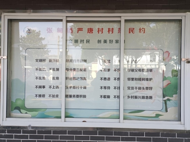 “我兒子結(jié)婚,兒媳婦沒要一分錢彩禮,聽說親戚家結(jié)婚要了幾十萬彩禮,沒辦法,只能到處借錢。”談到高額彩禮,嚴(yán)唐村村民董文桂心有余悸。嚴(yán)唐村結(jié)合村情實際,將移風(fēng)易俗、喪事簡辦、孝親敬老等內(nèi)容融入村規(guī)民約,在文化廣場、主要道路等顯著位置廣泛設(shè)置宣傳欄,讓村民在散步休閑、鍛煉身體的同時,潛移默化接受文明新風(fēng)的熏陶。