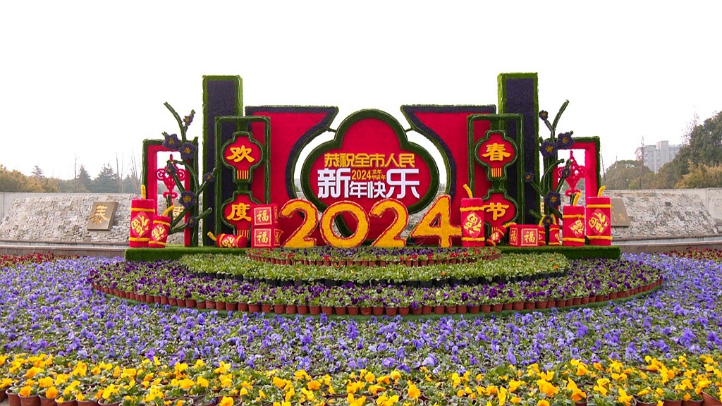 新春走基層|泰興:燈籠鮮花映襯,城市裝扮一新