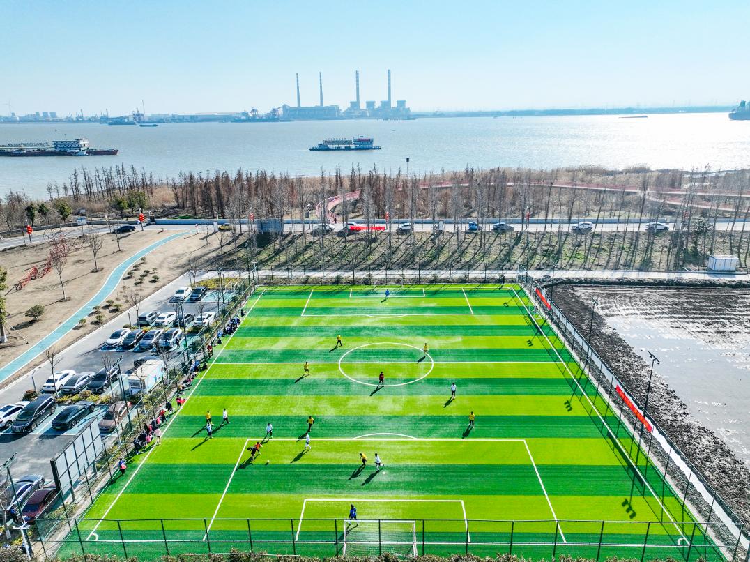 2月12日,大年初三,陽光明媚,正是適宜戶外運動的好天氣。靖江市新橋鎮新合村“漁憶”長江濕地生態公園旁的足球場上,一群足球愛好者聚在一起,用一場酣暢淋漓的“村超”足球賽,點燃新春熱情。