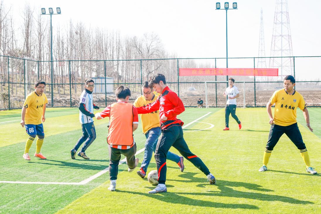 當天,共有流浪者、牧馬、泰興黃橋三支球隊參賽,球員們拼搶激烈,場邊加油聲此起彼伏。陽光下,大家揮灑汗水、釋放激情,在比賽中享受快樂,增進友誼。來自揚州的吉茂目前生活在靖江,他興奮地說,“我們熱愛足球,春節期間以球會友,特別開心!”
