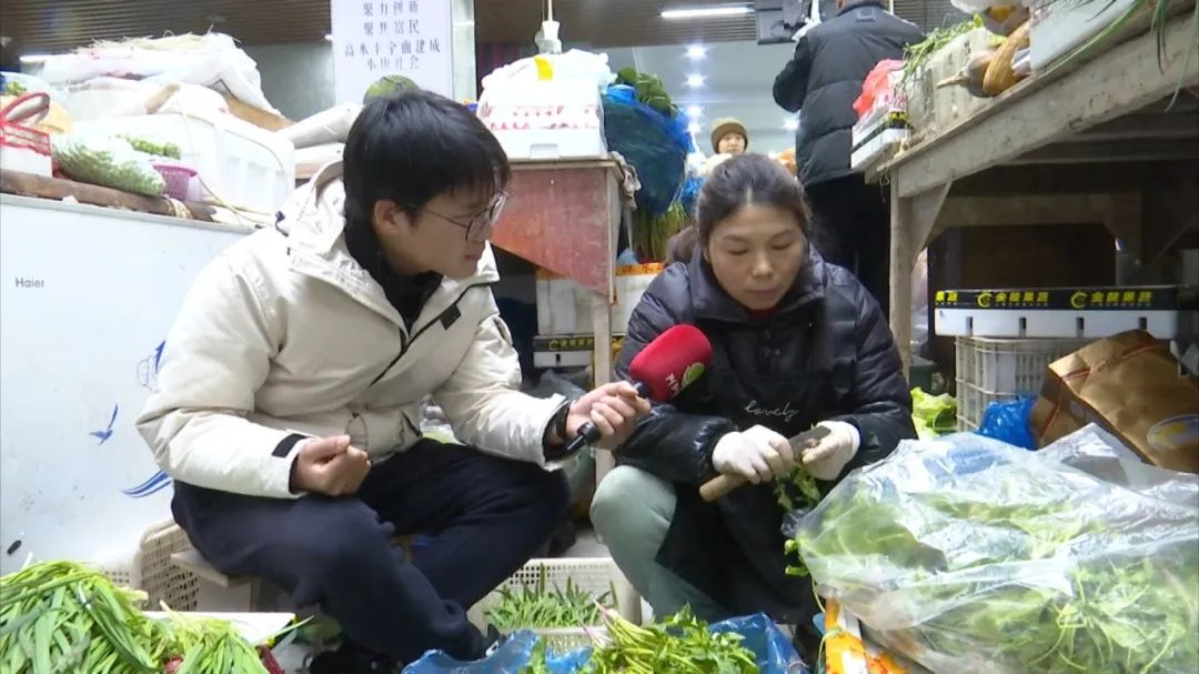 說到春節,中國人愛在新年餐桌上,用美食犒勞一年的辛勞。采購食材,準備美食,春節期間的菜場格外忙碌,處處透露著節日味、生活味、人情味,濃濃的煙火氣,濃濃的年味兒,交織出市井百姓幸福生活的美麗畫卷,而起筆作畫繪就這一切的,則是菜場里的商戶們。春節期間,記者走進興化市的農貿市場,走近蔬菜商販,聆聽他們創業過程中的酸甜苦辣,品味他們的百味人生。 采訪中,我們先來到五里亭農貿市場,這里人來人往,新鮮的蔬菜、瓜果等農產品琳瑯滿目,商販們熱火朝天地叫賣著,顧客們在市場里挑選著中意的食材,商販們也是鉚足了干勁,忙中作樂,用自己的雙手創造自己的幸福生活。