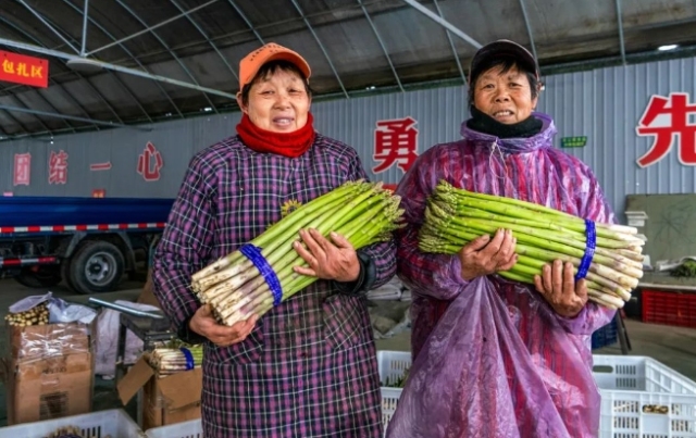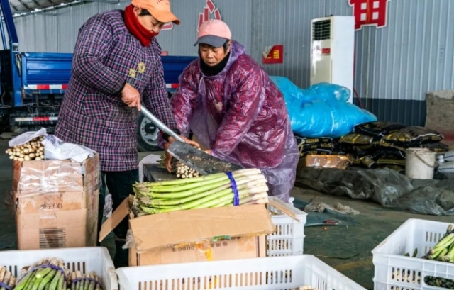 蘆筍營養價值高,熱量低,口感鮮嫩,深受市民們的喜愛。眼下,泰州市姜堰區白米鎮大安村的蘆筍迎來采收季,日均產量在1000斤以上,帶領村民增收致富。 室外寒風凜冽,棚內溫暖如春。在姜堰區白米鎮大安村蔬菜種植專業合作社的大棚內,一壟壟蘆筍破土而出,根根翠綠鮮嫩,一派生機勃勃的喜人景象。工人李社余正彎腰采摘蘆筍,看似簡單的動作,卻也有講究:“采摘蘆筍時,手伸下去抓住底部,蘆筍尖端達到肘關節,長度大概40公分,這根蘆筍就達到采摘的標準了。” 蘆筍是一種品味兼優的名貴蔬菜,被譽為“蔬菜之王”,不僅有食用價值,還有一定的藥用價值,目前的市場需求相當可觀。眼下大安村蘆筍搶鮮上市,工人們都是從早上6點就開始進棚忙活,平均下來每天都能收獲1000多斤。 收割好的蘆筍被運輸到加工車間,工人們按照蘆筍粗細不同,進行分選、裁切、打包、裝箱……忙得不亦樂乎。今年68歲的王鳳明是蘆筍基地的“老員工”,穩定的收入讓她干勁十足:“一天工作8小時左右,收入有100多元,離家也很近,很方便。” 據了解,姜堰區白米鎮大安村蘆筍從2016年開始種植,經過幾年的實踐,總結出了一套成熟的種植技術。目前蘆筍種植面積已經達到200余畝,畝均收益在4000元左右,成為當地群眾致富增收的一項特色產業。 來源:泰州新聞網 |