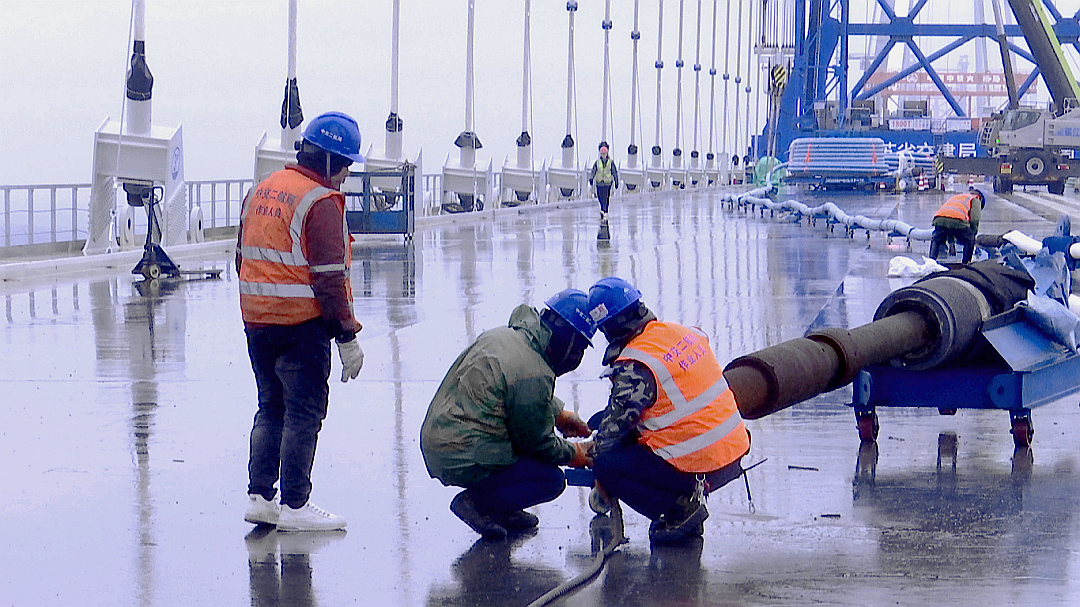 近日,在常泰長江大橋主航道橋北主塔上層橋面施工現場,天空下起綿綿細雨,風力達到5級,施工人員有序進行斜拉索掛設前的安置作業,兩條巨大的斜拉索被工人拉到預定位置,為后續的掛設做好準備。 人勤春來早,實干正當時。常泰長江大橋各項目部人員快速到崗,全面吹響了實干號角。新年新氣象,常泰長江大橋猶如一道美麗彩虹,橫跨長江兩岸,連接起兩岸的經濟生活,也連接起百姓和建設者們的心。“目前常泰長江大橋現場管理人員已全部到崗,現場所有作業人員已通過節后施工(安全)教育。現場工點也已通過節前復工檢查。目前正在進行的是斜拉索的施工和鋼梁的吊裝,為后期主橋的合龍奠定基礎。” 中交二航局常泰大橋項目部經理助理俞琳琳介紹。 常泰長江大橋主航道橋為雙塔雙索面鋼桁梁斜拉橋,主跨1208米,是目前世界最大跨度公鐵兩用斜拉橋。斜拉索采用平行鋼絲索方案,總計312根。其中,最長索長度約633米、重約110噸。目前,斜拉索已經掛設完成160根。 同樣,在常州側的常泰長江大橋主航道橋Z71—72鋼梁順利吊裝完成,實現了“龍年新春第一吊”。當前,常泰長江大橋正在開展主航道橋的大節段鋼桁梁吊裝和斜拉索掛設施工,預計2024年7月份,鋼桁梁完成合龍,同時完成斜拉索全部施工。 來源:泰州新聞網 |