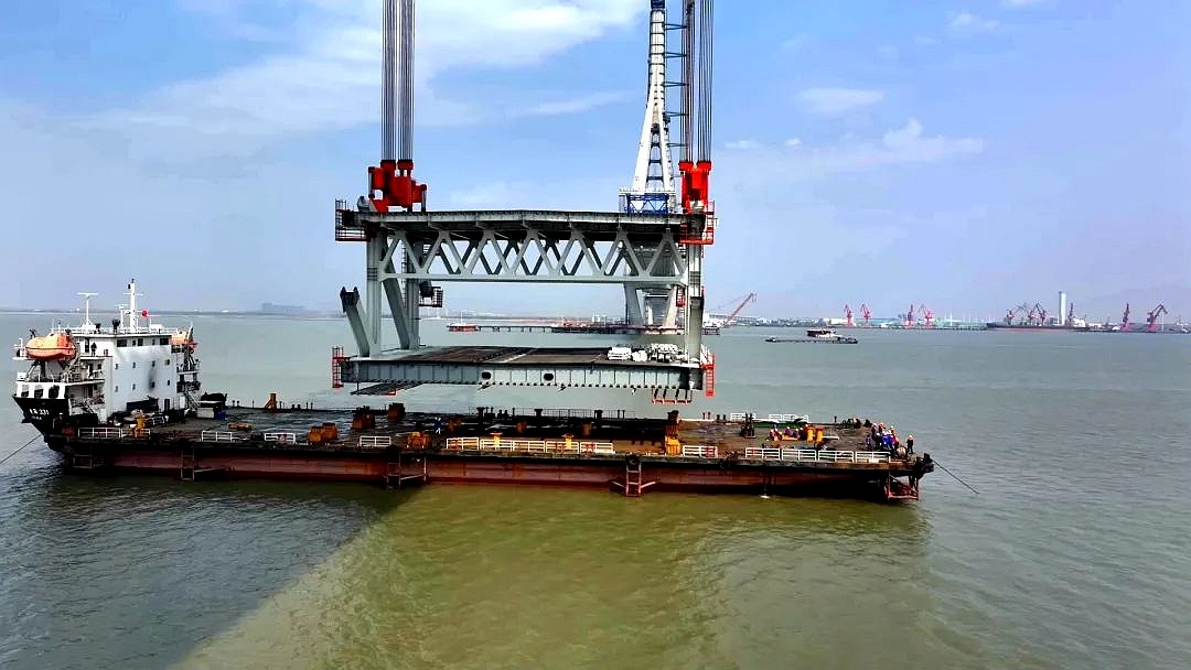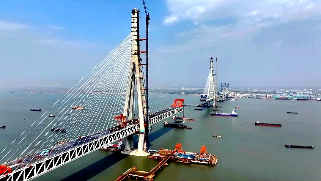 新年新氣象,常泰長江大橋鋼桁梁吊裝和斜拉索掛設同步推進