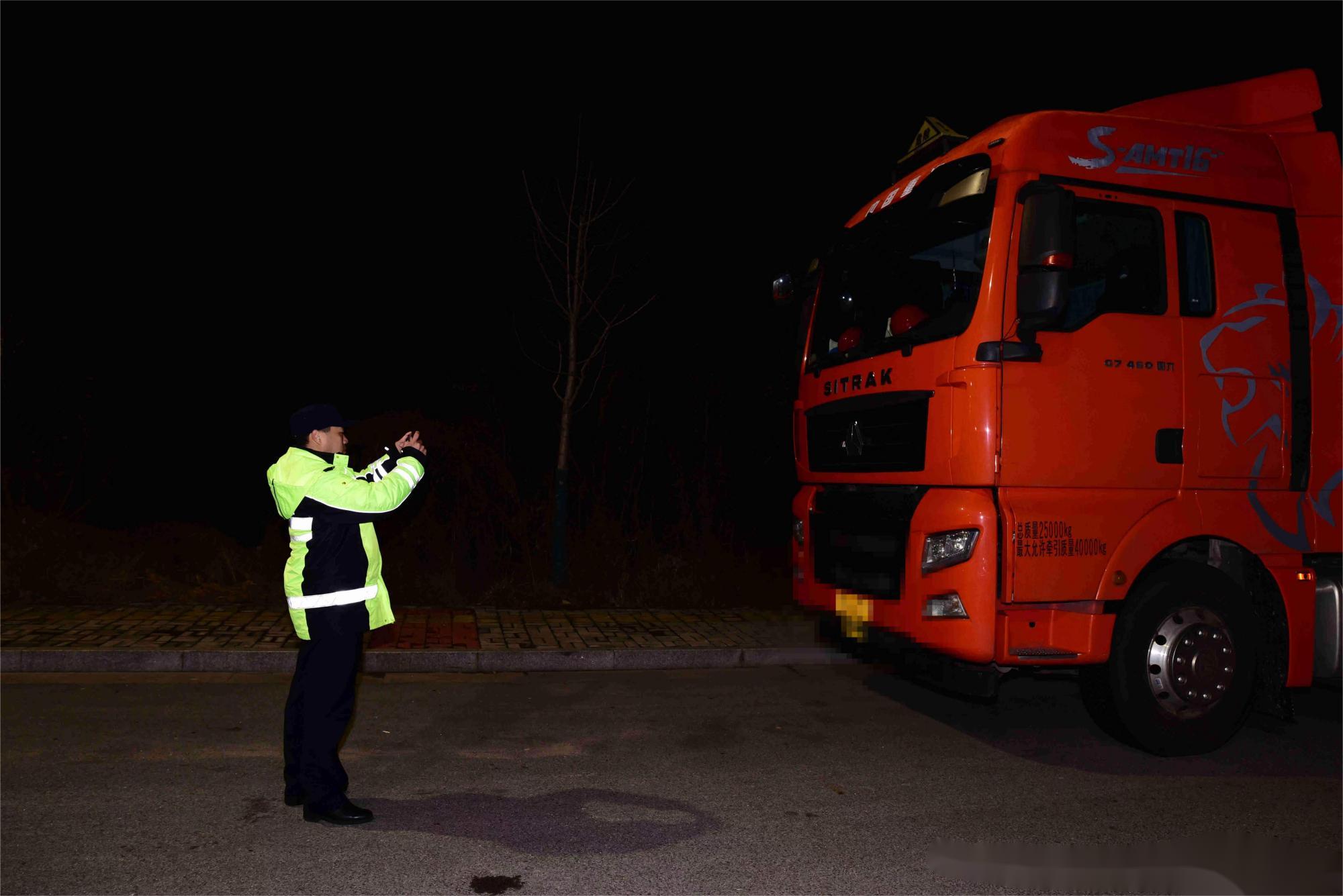 據介紹,3月1日夜間11時許,泰州交通執法支隊道路執法一大隊接到群眾反映,有一輛;愤\輸車隨意停放在海陵區潤豐路路段,這個位置靠近一家大型化工廠,存在安全隱患。此外,此路段未劃設停車位,停放在這里的“龐然大物”也對交通產生影響。該大隊執法人員聯合交警部門趕往現場,發現情況屬實。此路段除了停放有;奋囃猓停放了不少大貨車。執法人員利用執法終端,對道路兩側違法停靠的貨車逐一甄別確認,對屬于運輸危化品的車輛進行拍照取證,并通知車主。 “我以為這里車流量不大,為了省事,就將車臨時停在這里。”一名;奋囓囍髡f。在執法人員的指引下,他將車開往指定地點停放,并接受后續處理。