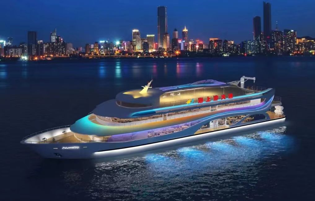 (“海上游大連”游船效果圖) 作為上海東方明珠品牌旗下的首艘五星級游覽船,“上海之星”游船是富含時尚、創意、科技、智能的新一代黃浦江游船。2023年11月,“上海之星”游船吉水典禮在東方船艇靖江制造基地舉行。“上海之星”總長49.65米,載客300人,舷側采用兩層貫通超大玻璃幕墻結構,二層甲板突破傳統設計方式,采用大面積鏤空結構,最大限度實現客艙區的通透性,為游客提供沉浸式融合氛圍體驗。游船的燈光秀系統還可與東方明珠電視塔進行時空互動,增強游客的觀光體驗感。