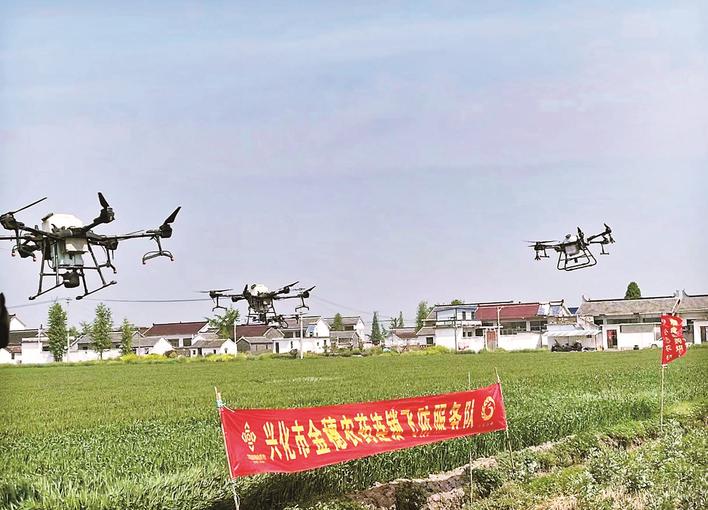 空中,3臺無人機超低空高效施肥;田間,兩臺植保機展開21米長的“翅膀”穿梭噴藥。3月13日上午,位于興化市興東鎮的興化大米全產業鏈示范基地,由10多位專業技術人員組成的興化供銷為農植保飛防服務隊正在進行田間作業。